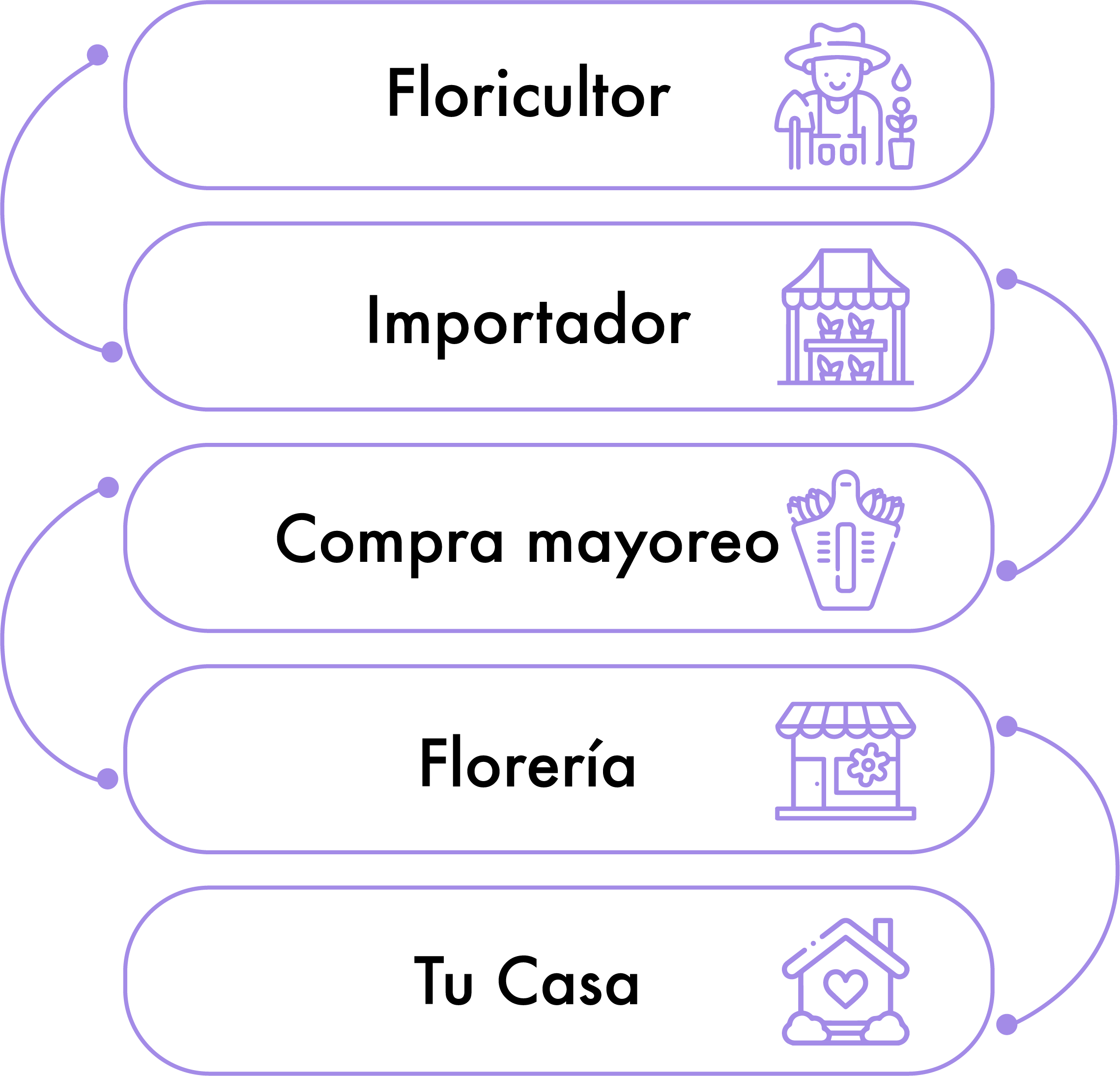 Trabajamos directamente de la mano con floricultores de las ciudades más importantes del país, dando precios justos por su trabajo. De esta manera, tú recibes las flores más frescas y con los diseños más lindos en la puerta de tu casa, sin intermediarios.