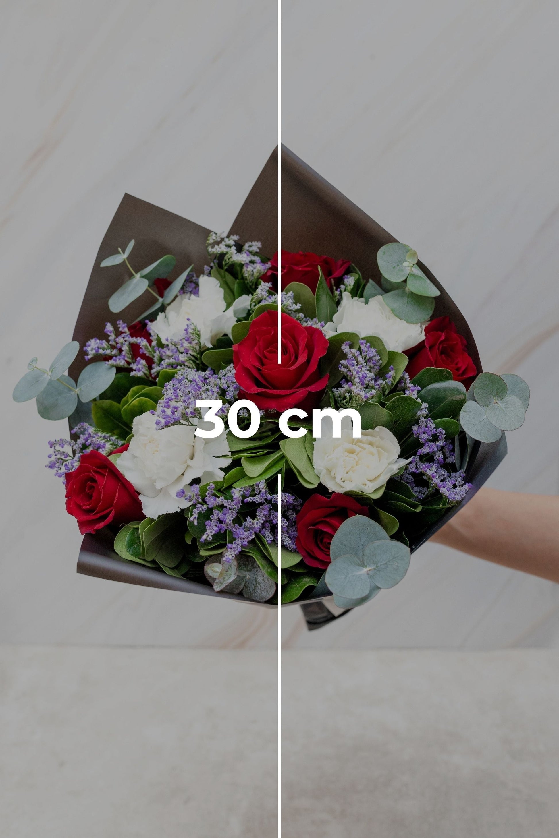 Da click en el tamaño que prefieras y descubre como se vería tu bouquet.